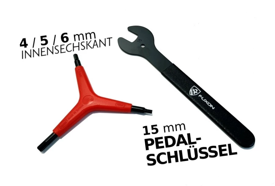 Y-Innensechskantschlüssel 4-6 mm // Pedalschlüssel Ihr bei uns bestelltes Rad kommt fertig montiert und sicher verpackt bei Ihnen an. Verpackungsbedingt müssen Sie nur noch die Pedalen eindrehen, sowie den Lenker gerade stellen. Sobald Sie zu Hause nicht das passende Werkzeug zur Hand haben, ist dieses Set hier genau dass richtige für Sie! Marke: Fuxon | Pedalschlüssel // S-Act Tools | Innensechskant Sternschklüssel ArtNr.: 091-37212 // 090-37043 UVP*: 12,98€ Farbe: rot-schwarz |schwarz