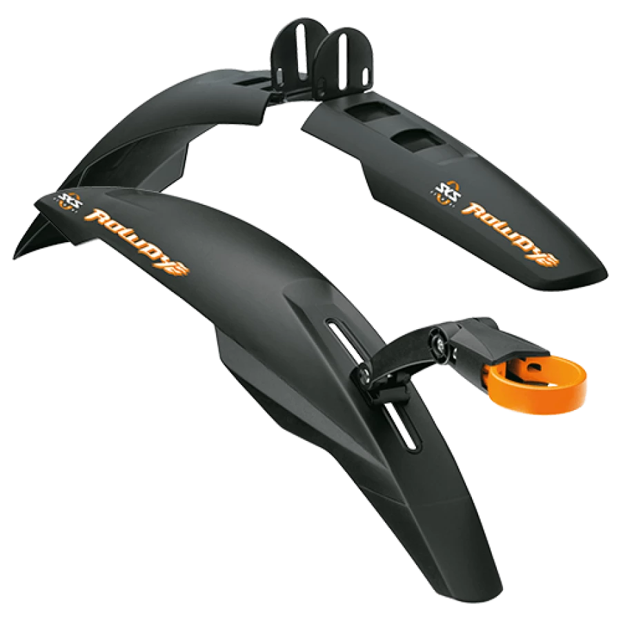 SKS Rowdy SET Bester Schutz auch für die kleinen Das SKS Rowdy Schutzblechset ist das erste High-End-Dirtboard für Kinder- und Jugend-MTB´s. Mit ein paar Handgriffen lassen sich die Schutzbleche einfach montieren und sorgen so für maximalen Spritzschutz. Das Multi-Adjust-Design passt an alle Rahmengeometrien. Produktinformationen Hersteller: SKS Modell: Rowdy Set Farbe: schwarz Abnehmbar: hinten abnehmbar Gewicht: 250 gramm geeignet für: 20 bis 24 Zoll Lieferumfang: SKS Rowdy Set Halter